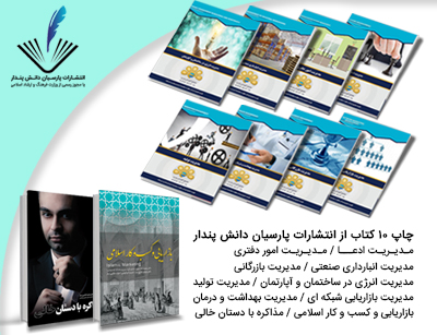 به گزارش خبرگزاری پژوهش نیوز در سه ماهه اخیر این انتشارات که فعالیت خود را به تازگی آغاز کرده است با شماره پروانه 13475 اقدام به انتشار 10 عنوان کتاب با عنوان های مدیریت ادعا، مدیریت امور دفتری ، مدیریت بازرگانی ، مدیریت تولید، مدیریت بازاریابی شبکه ای، مدیریت انرژی در ساختمان و آپارتمان. مدیریت بهداشت و درمان- بازاریابی و کسب و کار اسلامی. مذاکره با دستان خالی نموده است. این کتب مربوط به مدیریت و بازاریابی هستند و چاپ نخست آن ها بوده است. مدیر این انتشارات آقای میثم شکری ساز با بیان ای...